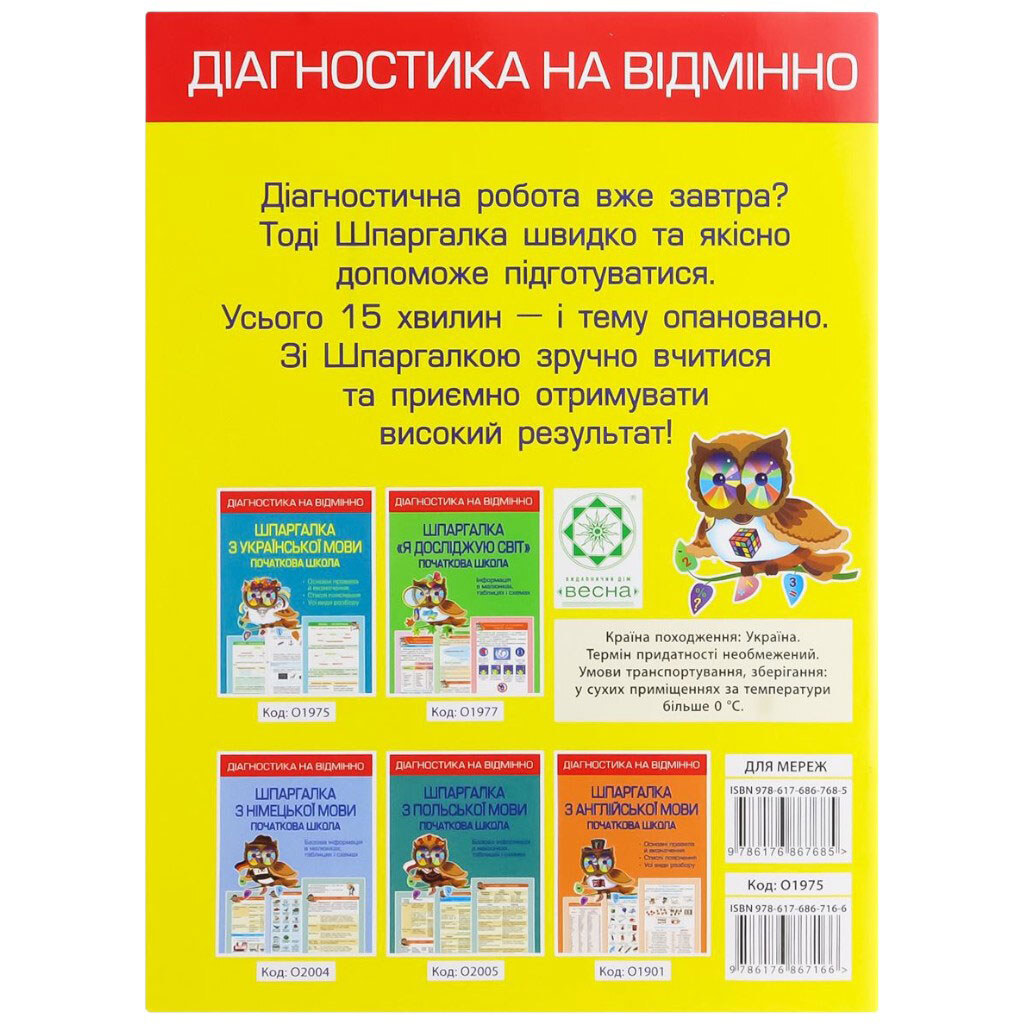 Книга детская издательства Весна серия Диагностика с отличием Шпаргалка