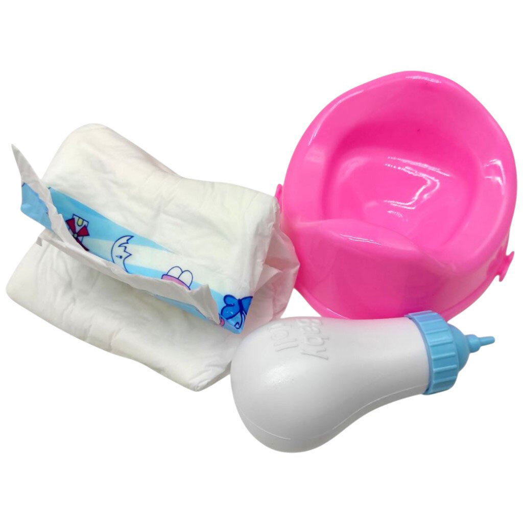 Коляска с пупсом и аксессуарами, розовая в горошок, Mic
