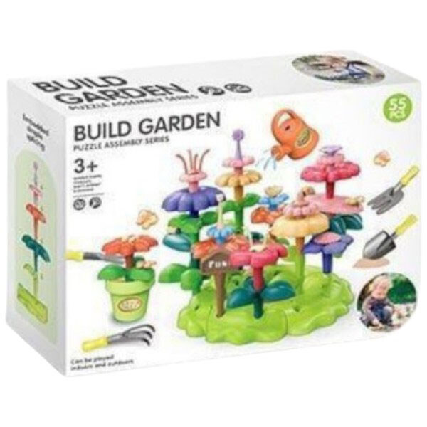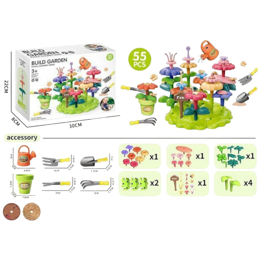 Конструктор "Цветочный сад", набор садовода, 55 элементов, грабли, лопата, вила, лейка, вазон, цветы, в коробке, Mic