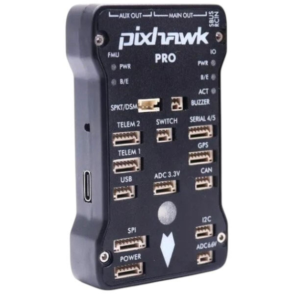 Примечание: Описание: Pixhawk это высокопроизводительный автопилот в одном модуле, подходит для установки на любой носитель (самолет, крыло, квадрокоптер, вертолет, автомобили, лодки). Имеет 14 PWM выходов для сервоприводов, интерфейсы UART, I2C, SPI и CAN, поддержку приемников Spektrum DSM/DSM2/DSM-X и Futaba SBUS. Поддержка записи полетных данных на microSD, светодиодные индикаторы и бузер. Питание возможно от 3,3V или 6,6V, подключение к компьютеру осуществляется через USB Type-C. Разъемы GH1.25 с фиксацией обеспечивают надежное подключение. Совместим с прошивками ArduPilot и PX4. | Назначение: Контроллер полета