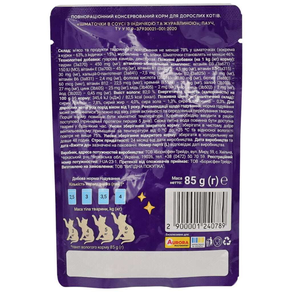 Корм для кошек "Мясные кусочки в соусе с индейкой и клюквой", пауч 85 г