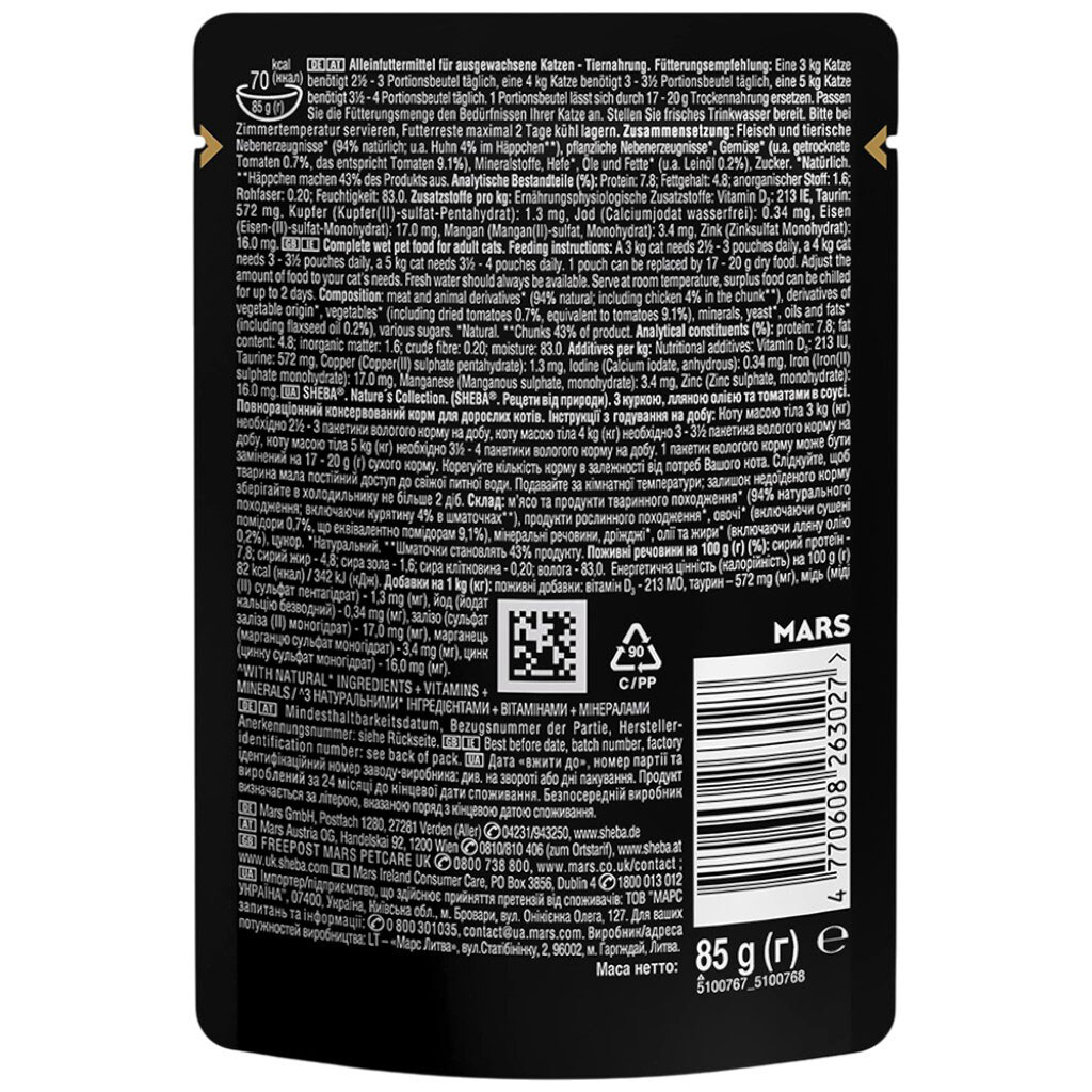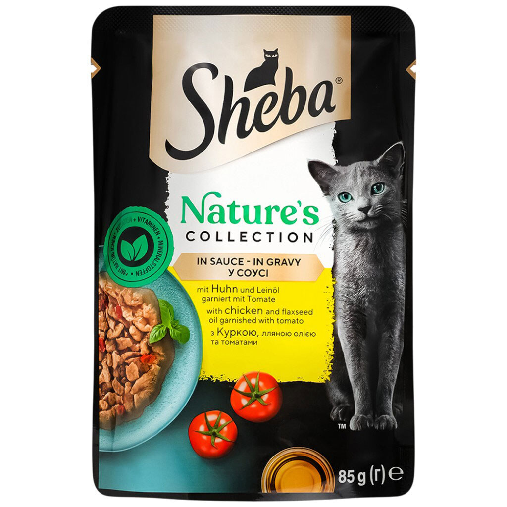 Корм для кошек SHEBA с курицей, льняным маслом, в томатном в соусе, пауч 85 г