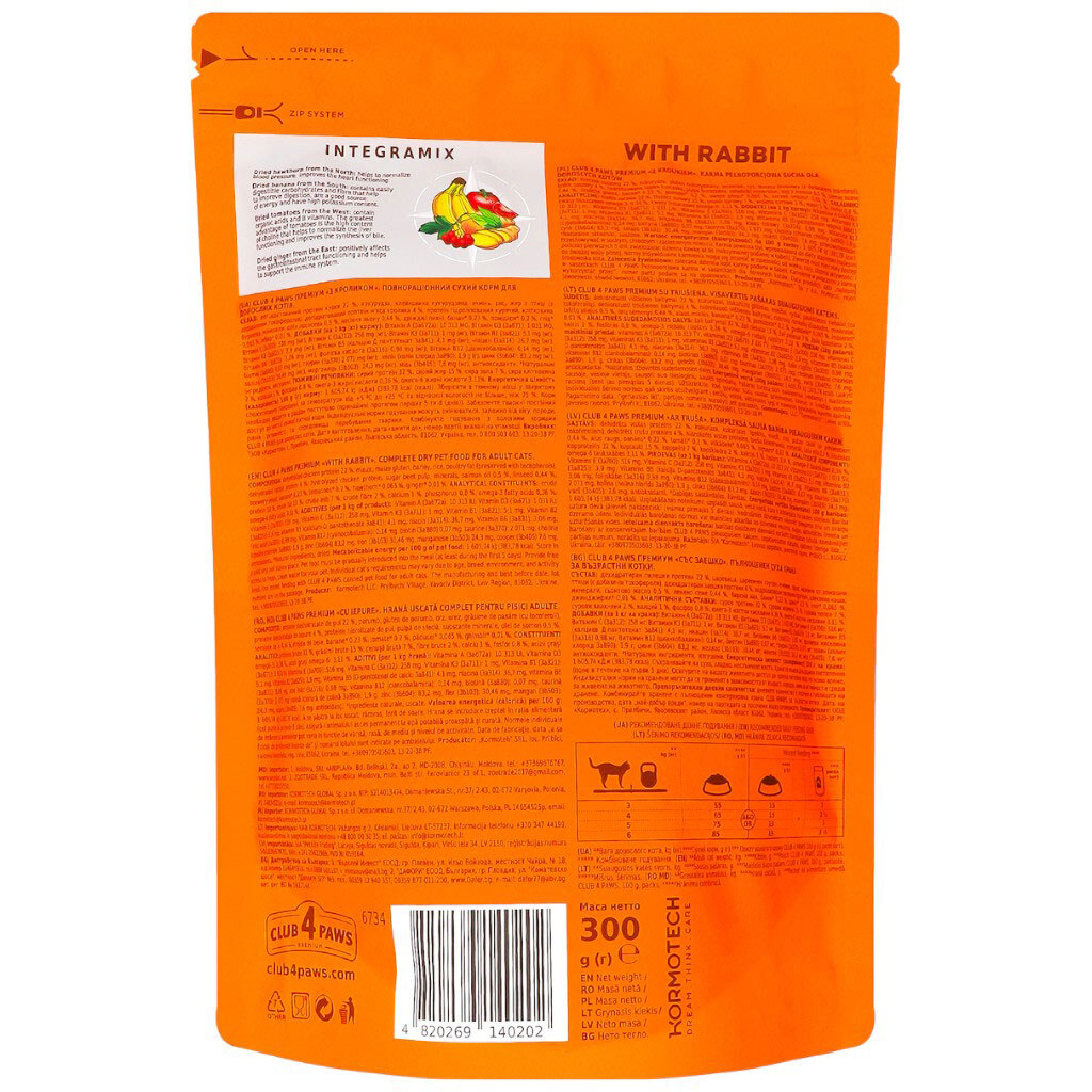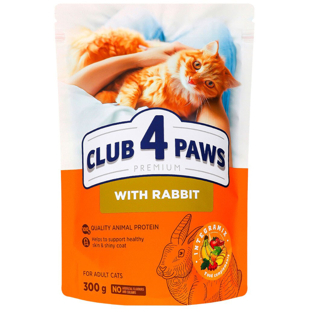 Корм для взрослых кошек сухой С4Р "Premium" с кроликом, 300 г, Клуб 4 лапи