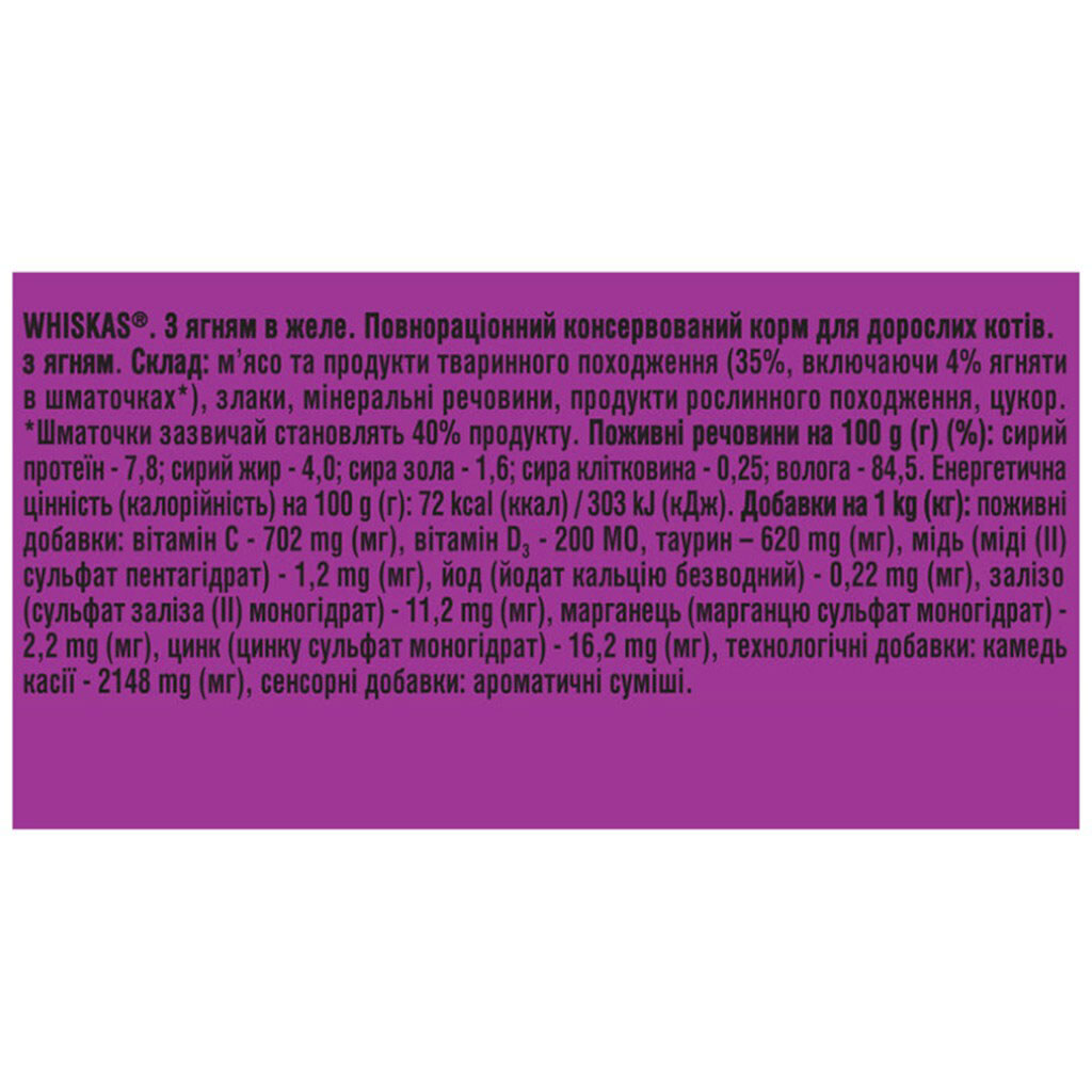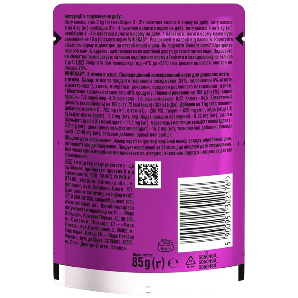 Корм для взрослых кошек WHISKAS с ягненком в желе, пауч 85 г