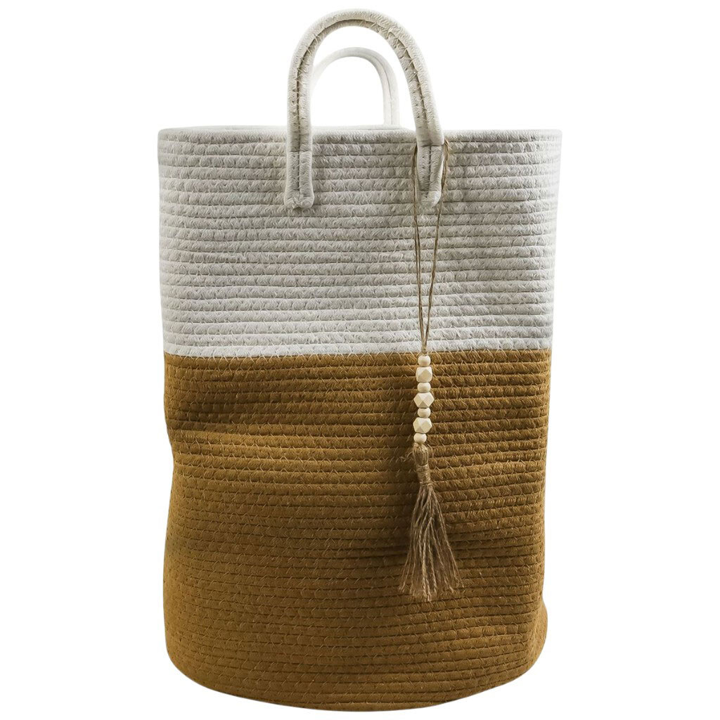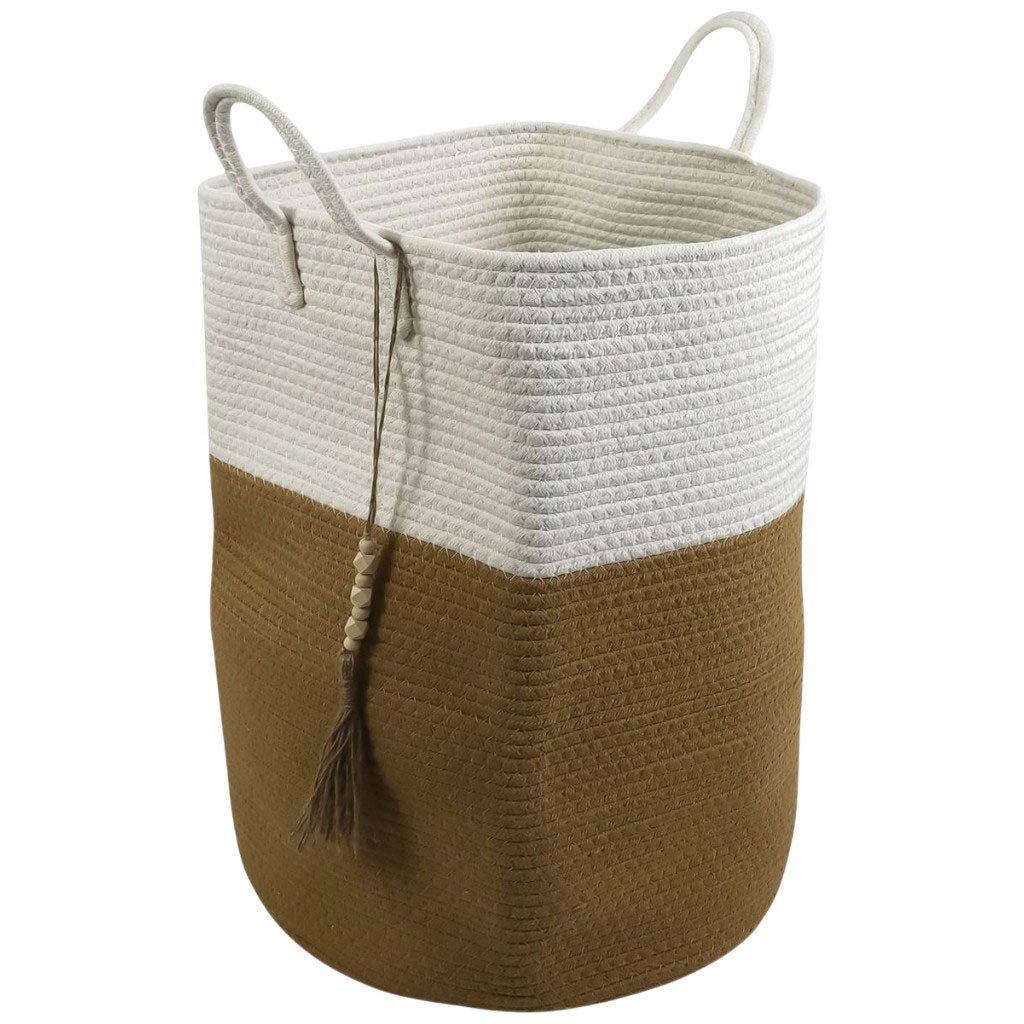 Корзина для хранения вещей текстильная плетеная круглая с ручками, 50х38 см