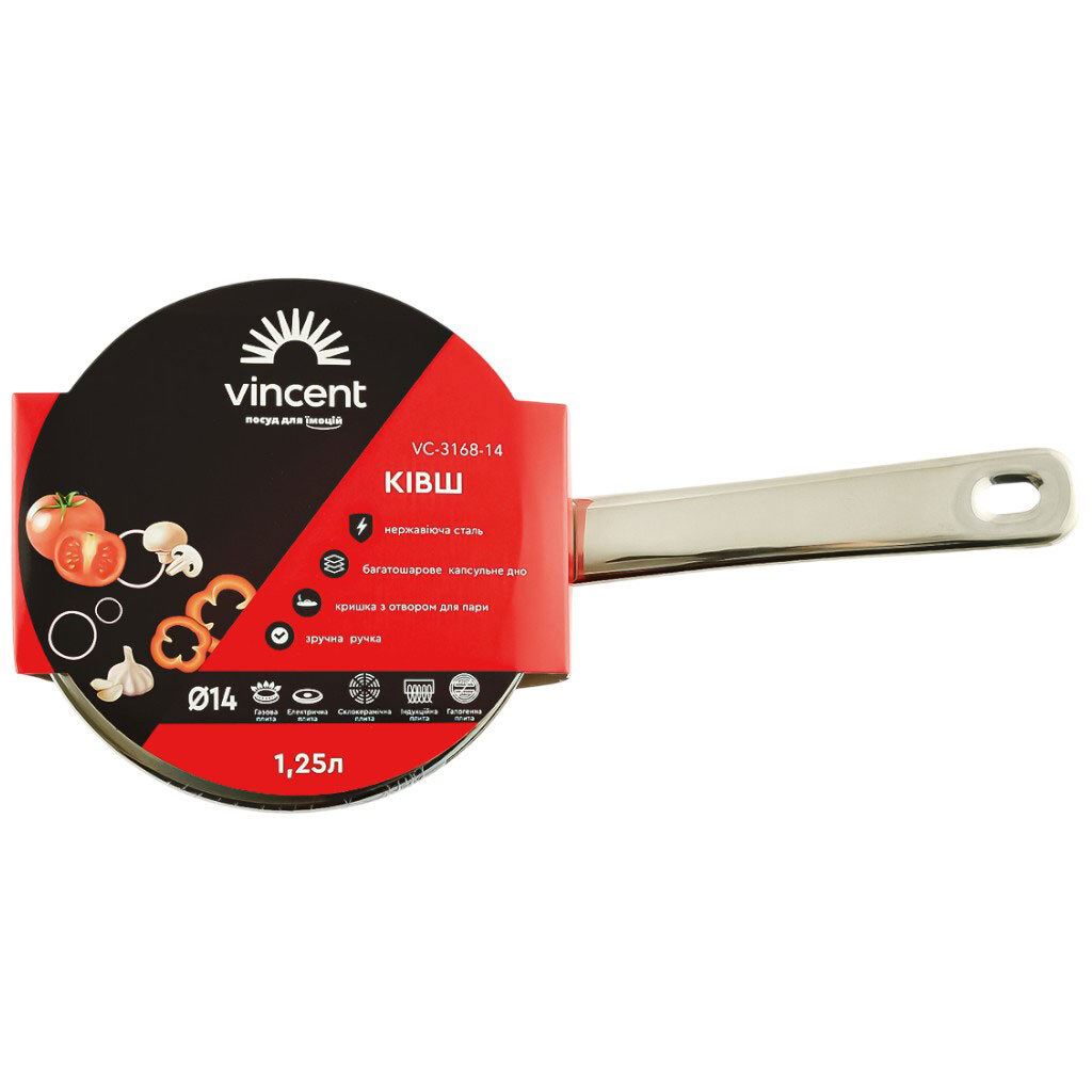 Ковш из нержавеющей стали с крышкой Vincent, 1,25 л
