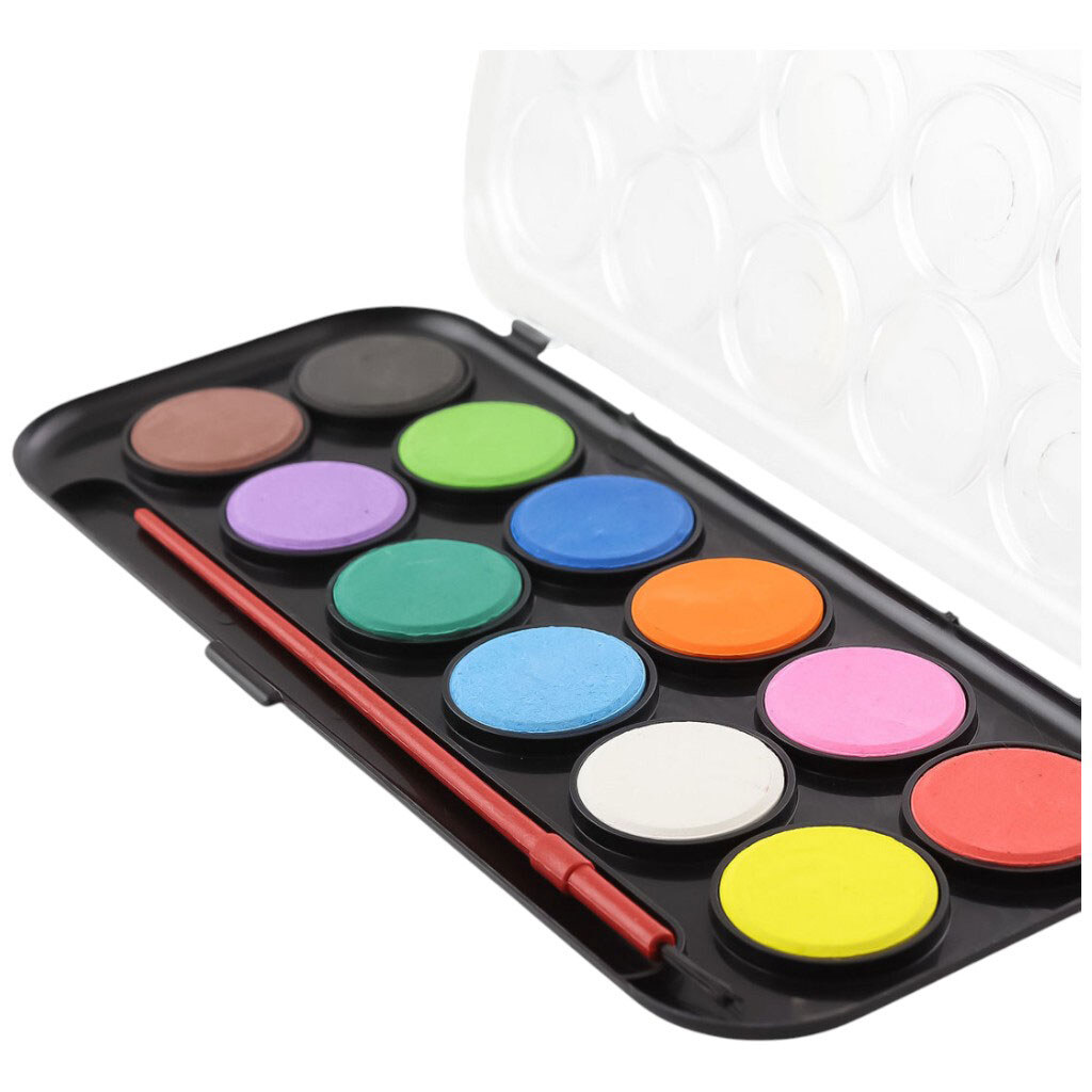 Примечание: Количество в упаковке, шт: 12 цветов | Страна производитель: Китай | Материал: Вода питьевая, декстрин, сахар, глицерин, пигменты | Назначение: Для рисования | Тип товара: Акварель