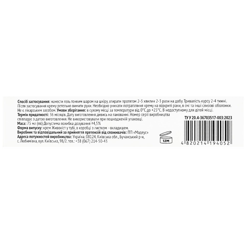 Примечание: Страна производитель: Украина | Объем: 75 мл | Назначение: Вспомогательное средство при растяжениях, разрывах связок, ушибах, ускорении восстановления тканей после переломов, для спортивного массажа | Срок годности: 36 месяцев