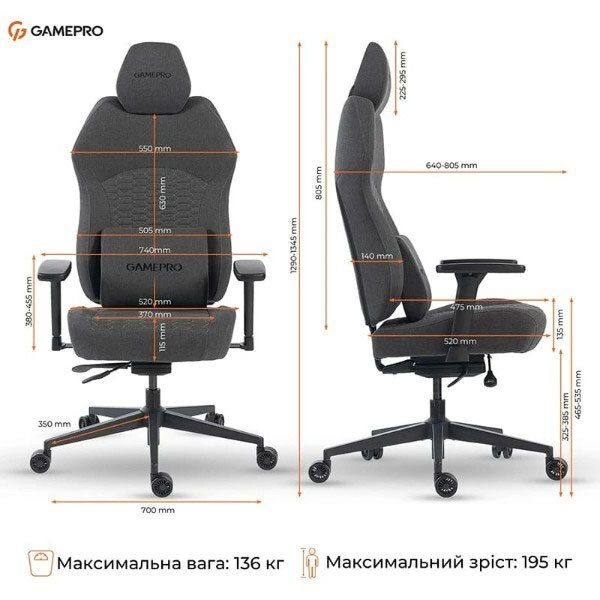 Кресло для геймеров GamePro GC760DG Fabric, Серый