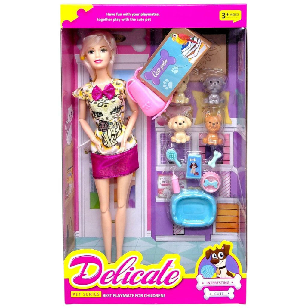 Кукла, высота 30 см, суставы на шарнирах, 4 фигурки питомцев, аксессуары для них, съемная обувь, ВИД 1, Mic