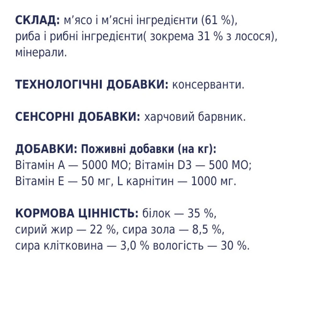 Примечание: Ингредиенты: Лосось | Класс: Премиум | Страна производитель: Украина