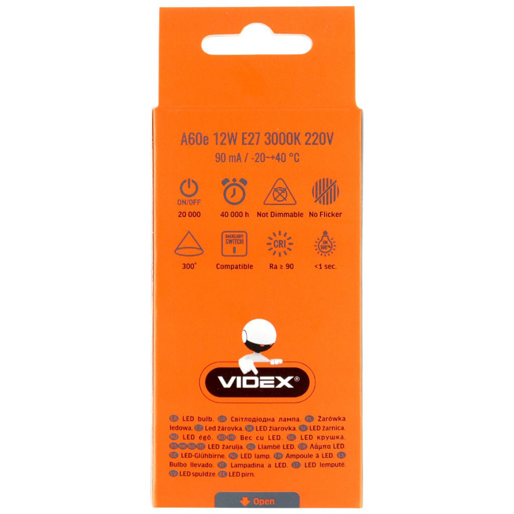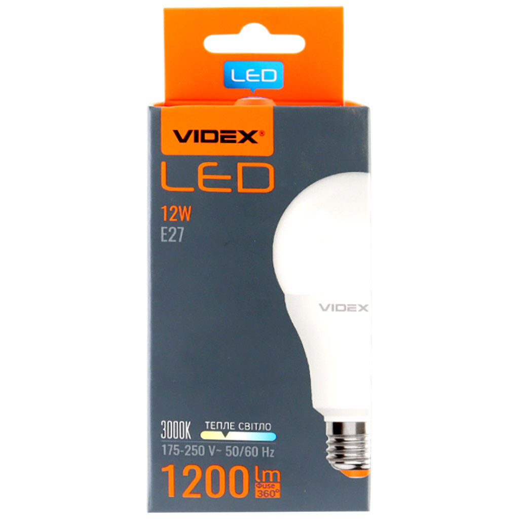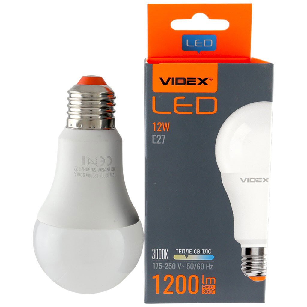 Лампа Led Videx A60e, 12 Вт, E27, 3000 K, 220 В, Videx