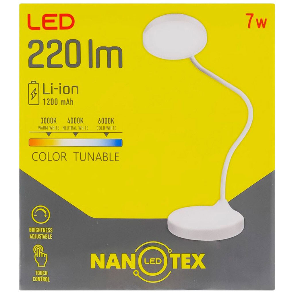 Лампа настольная LED аккумуляторная гибкая NANOTEX NAN-TF02W, белая, 7 Вт