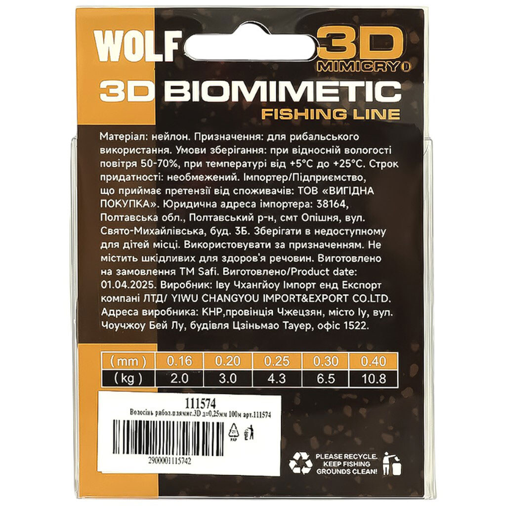 Леска рыболовная пятнистая 3D, d=0,25мм, 100 м