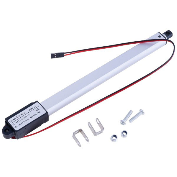 Примечание: Описание: Линейный мотор. Длина штока: 150 мм. скорость движения: 5mm/s. Грузоподъемность: 150N. Напряжение питания: 12VDC. Материал: алюминий. Встроенный контроль лимита выдвижения штока. Класс защиты: IP54. | Тип: линейный | Напряжение питания В: 12 V