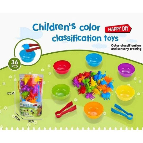 Примечание: Упаковка: Коробка | Вес в упаковке: 315 г | Габариты в упаковке: 10 x 10 x 16.5 см | Страна производитель: Китай | Комплектация: 36 фигурок для сортировки 6 цветных тарелочек 2 пары щипцов
