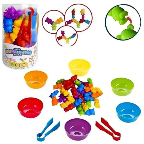 Логическая игра, сортер, 42 элементов, 6 тарелочек, 2 пары щипцов, Mic