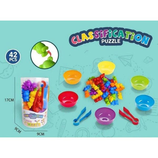 Примечание: Упаковка: Коробка | Вес в упаковке: 315 г | Габариты в упаковке: 10 x 10 x 16.5 см | Страна производитель: Китай | Комплектация: 42 фигурок для сортировки 6 цветных тарелочек 2 пары щипцов