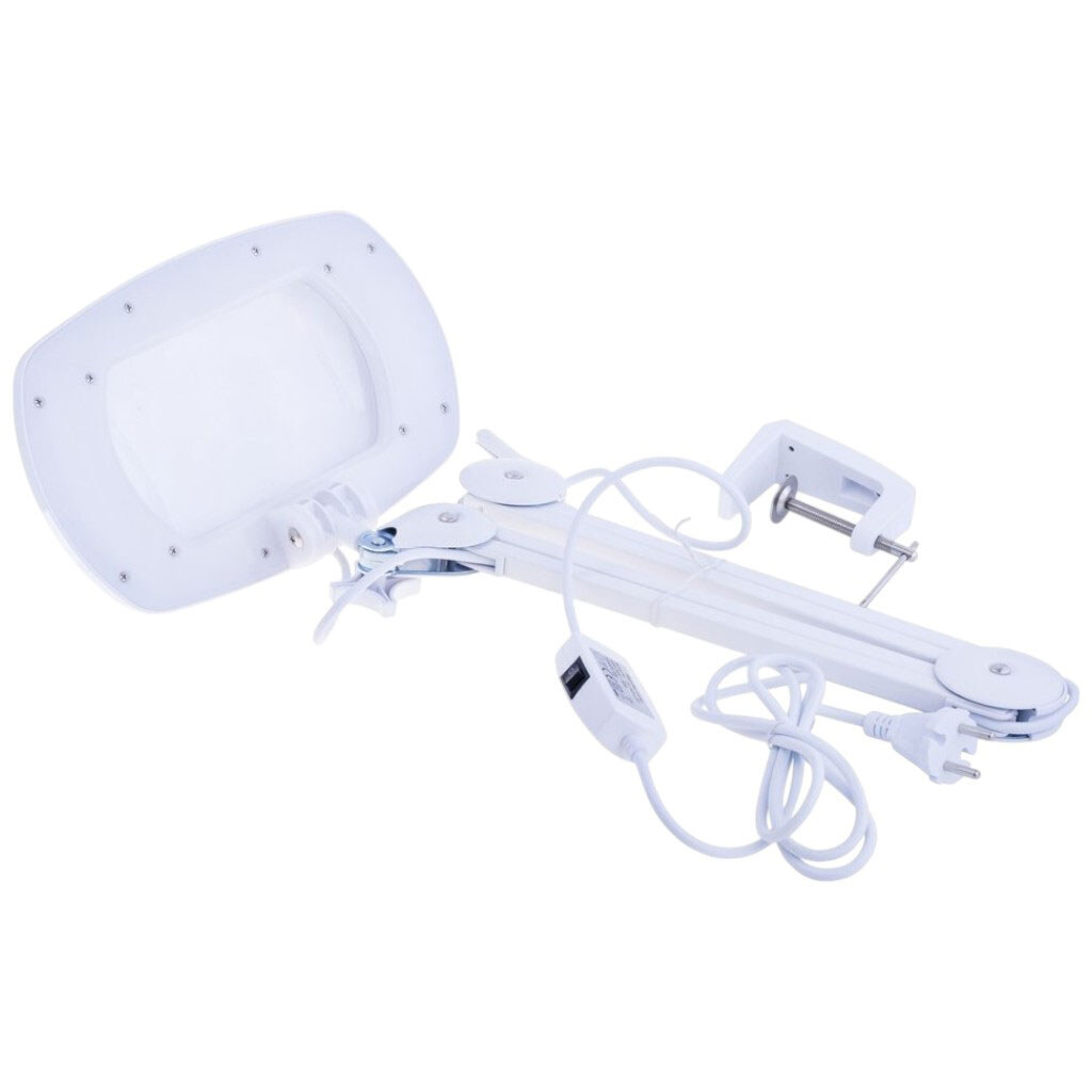 Примечание: Лупа-лампа LED (80 светодиодов), на держателе со струбциной для крепления, круглая, акриловая линза: 5 диоптрий (2,25Х) 108x174mm. Рабочая область составляет примерно 30 см. Струбцина может крепиться на любую поверхность толщиной 70 мм. Питание: 220VAC.