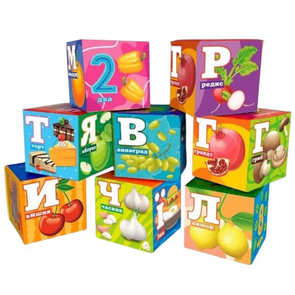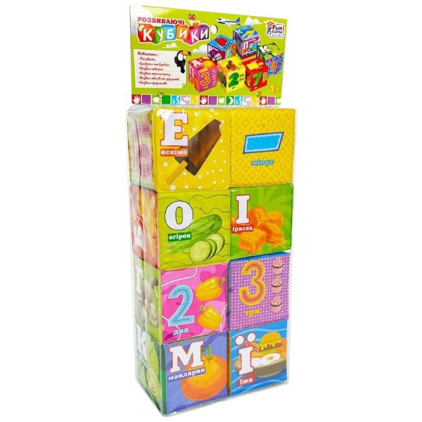 Мягкие кубики с буквами "Еда", 8 шт, Fun Game