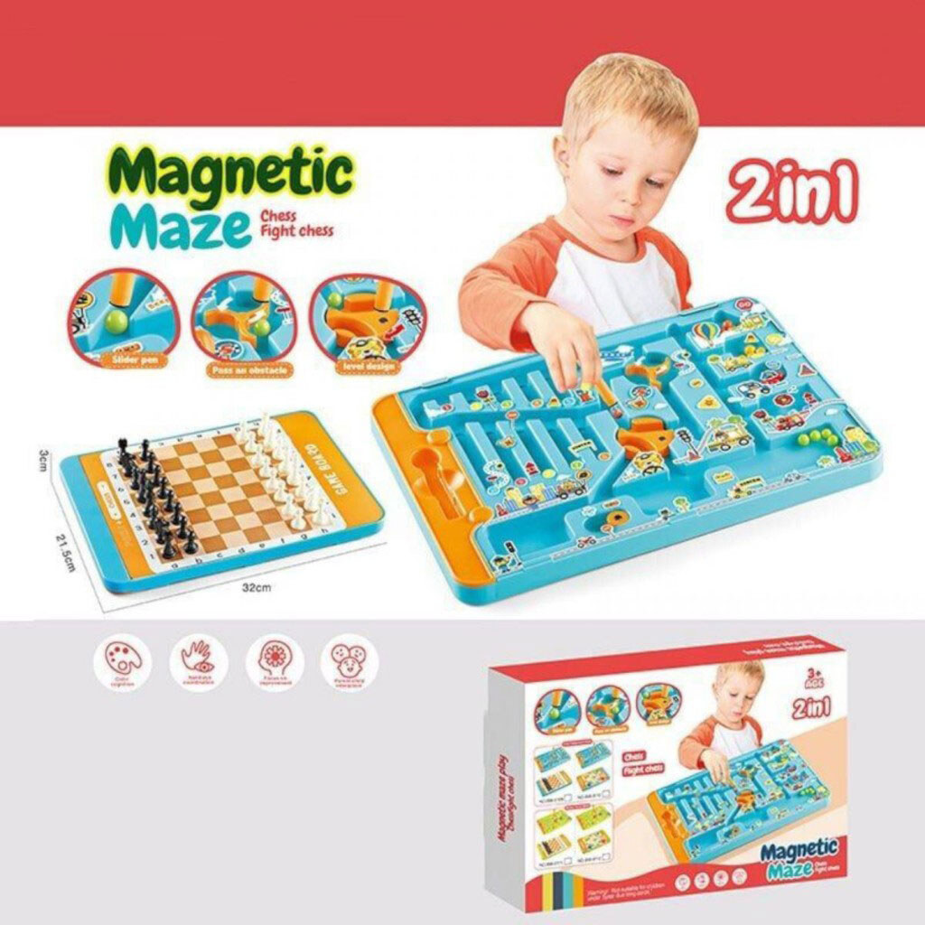 Магнитная игра 2в1 сортер, шахматы, магнитный стилус, в коробке, Mic