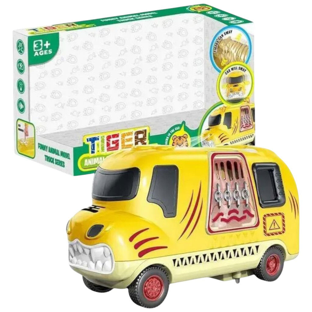 Машина музыкальная с тигром, свет, звуки, едет вперед, фигурка тигра двигается, в коробке, Mic