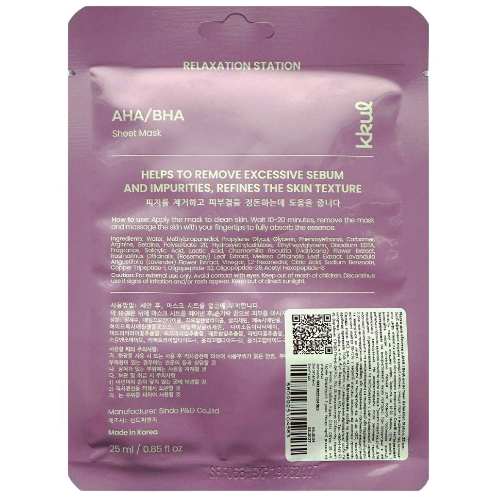 Маска для лица тканевая Kkul Relaxation Station с AHA, BHA кислотами, 25 мл