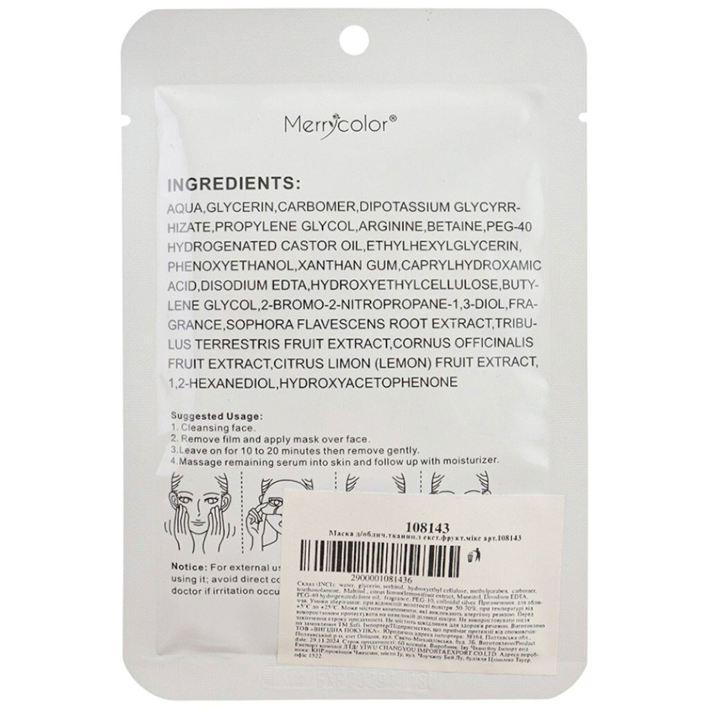 Примечание: Класс косметики: Масс-маркет | Страна производитель: Китай | Объем: 25 мл | Назначение: Питание | Увлажнение | Срок годности: 60 месяцев | Тип кожи: Для всех типов | Форма выпуска: Тканевая