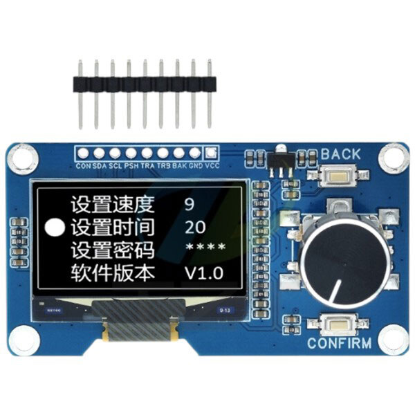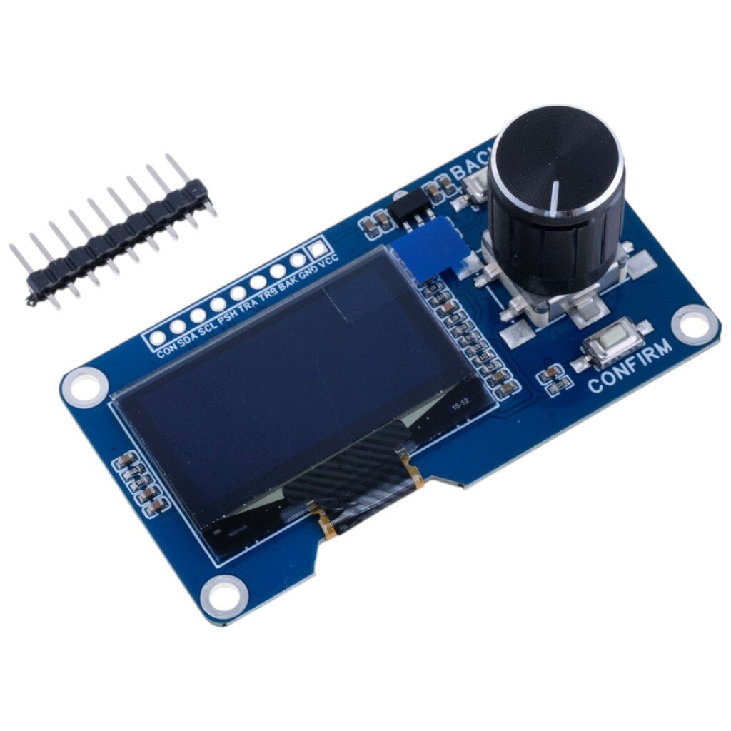 Примечание: Описание: Модуль дисплей 1,3" монохромный со встроенным энкодером EC11 - 20 импульсов, и 2 тактовыми кнопками. Интерфейс I²C. Контроллер SH1106. Питание 3,3VDC. Габариты: 64,9x35x23mm | Категория: Модуль индикация |