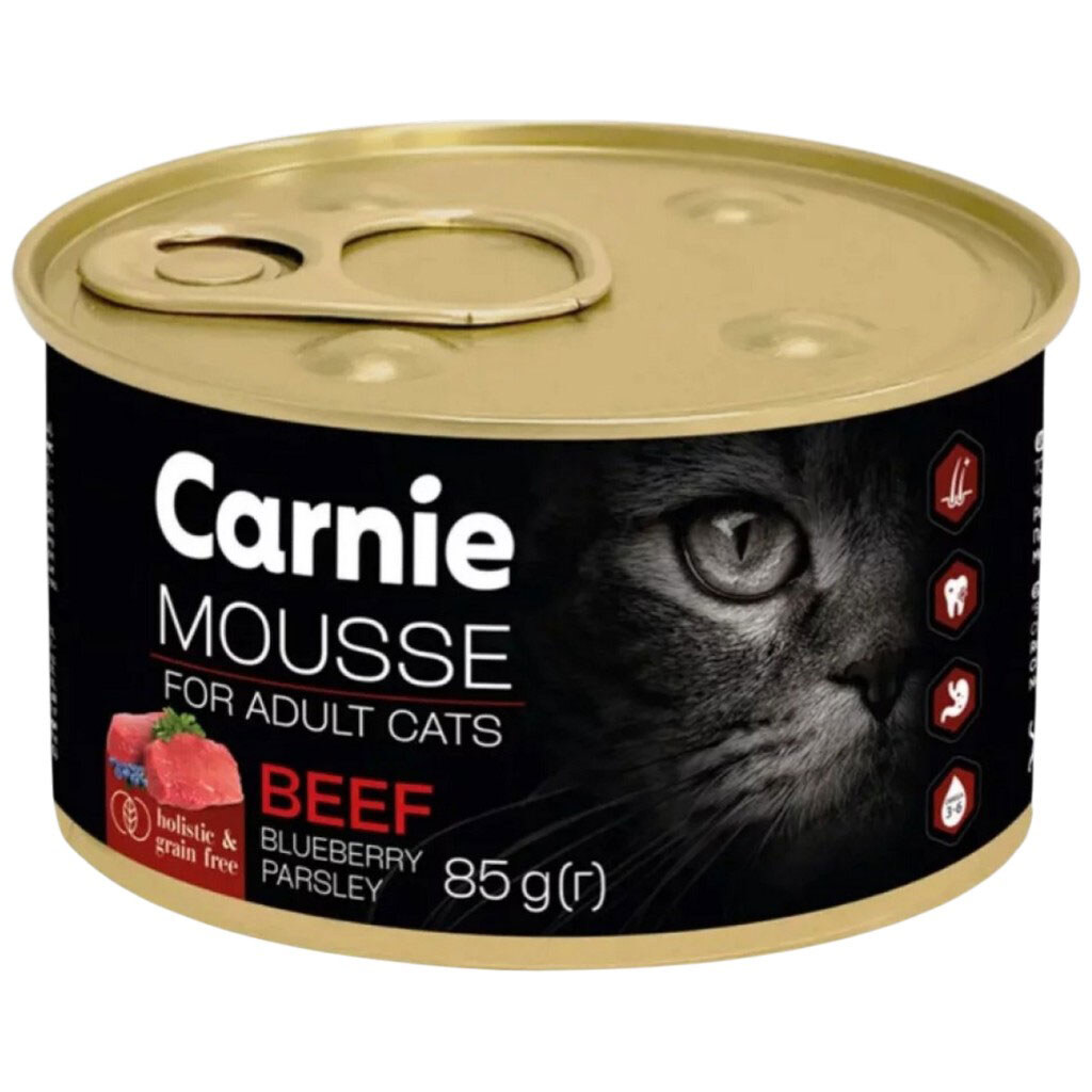 Мусс для взрослых кошек мясной Carnie с говядиной, черникой, петрушкой, 85 г