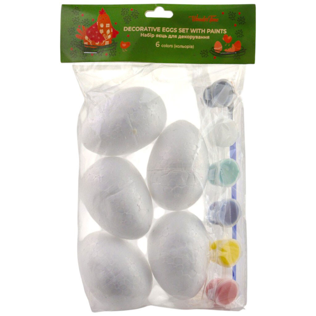 Примечание: Комплектация: 5 яиц, набор красок (6 цветов), кисточка | Страна производитель: Китай | Материал: пенополистирол, полистирол, алюминий, нейлон | Назначение: Для творчества и декора