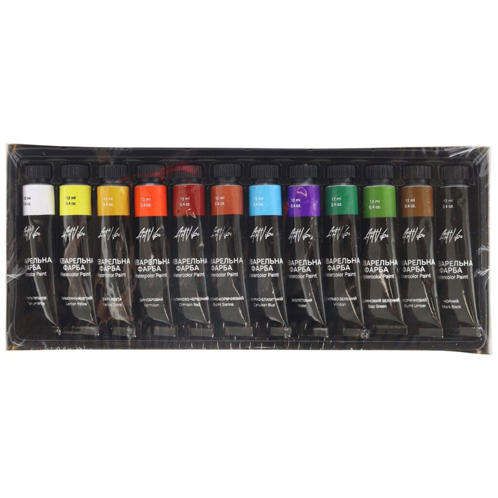 Набор акваральных красок Pictoria ArtVibe в тюбике, 12 цветов.