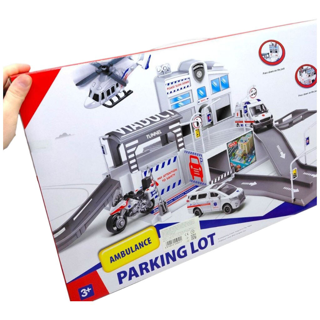Примечание: Упаковка: Коробка | Вес в упаковке: 1034 г | Габариты в упаковке: 52 x 7 x 35 см | Страна производитель: Китай | Комплектация: Элементы паркинга для сборки, Машины скорой помощи, Дополнительные игровые аксессуары