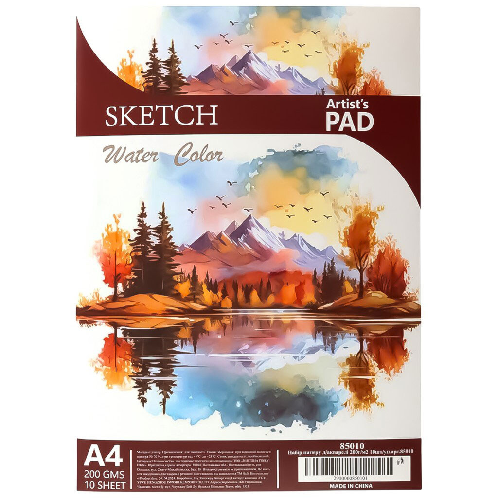 Набор бумаги для акварели, 200 г/м2, 10 шт/уп