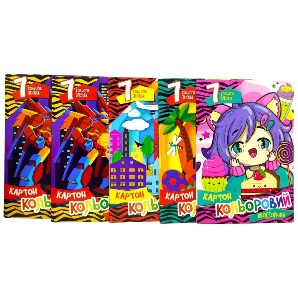 Набор цветного картона А4, двухсторонний, 7 л, микс видов, Апельсин