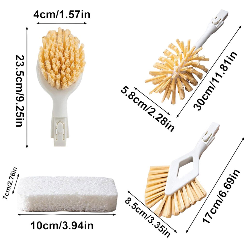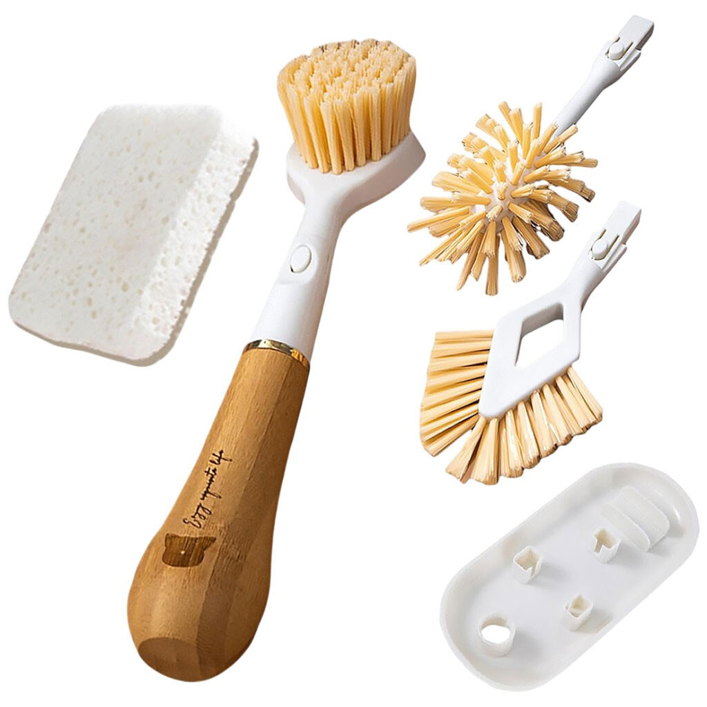Примечание: Комплектация: Губка, 3 щетки, ручка | Страна производитель: Китай | Материал: Полипропилен, целлюлозная губка, бамбук, полиэтилен | Назначение: Для мытья всех видов посуды и кухонных поверхностей