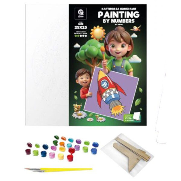 Набор для росписи по номерам 25х25 см "К звездам", с деревянной подставкой, Qbee