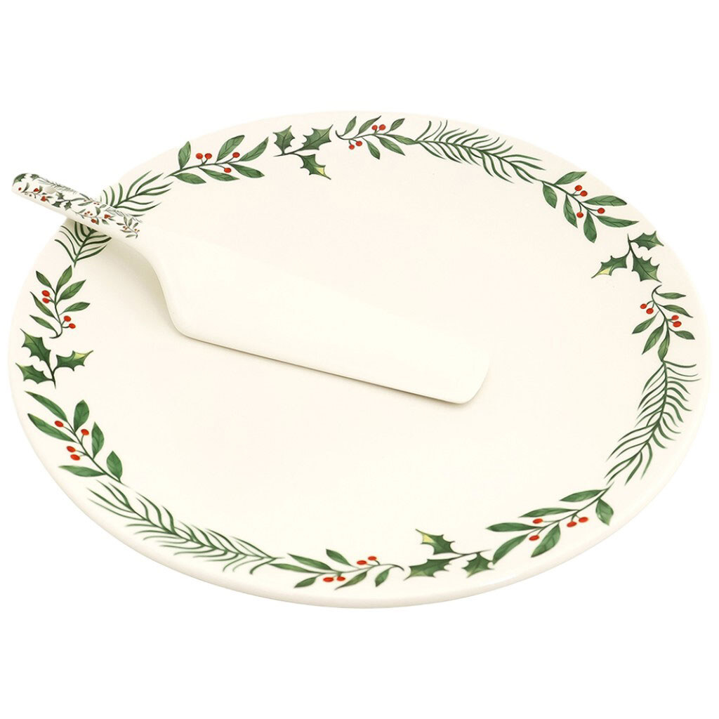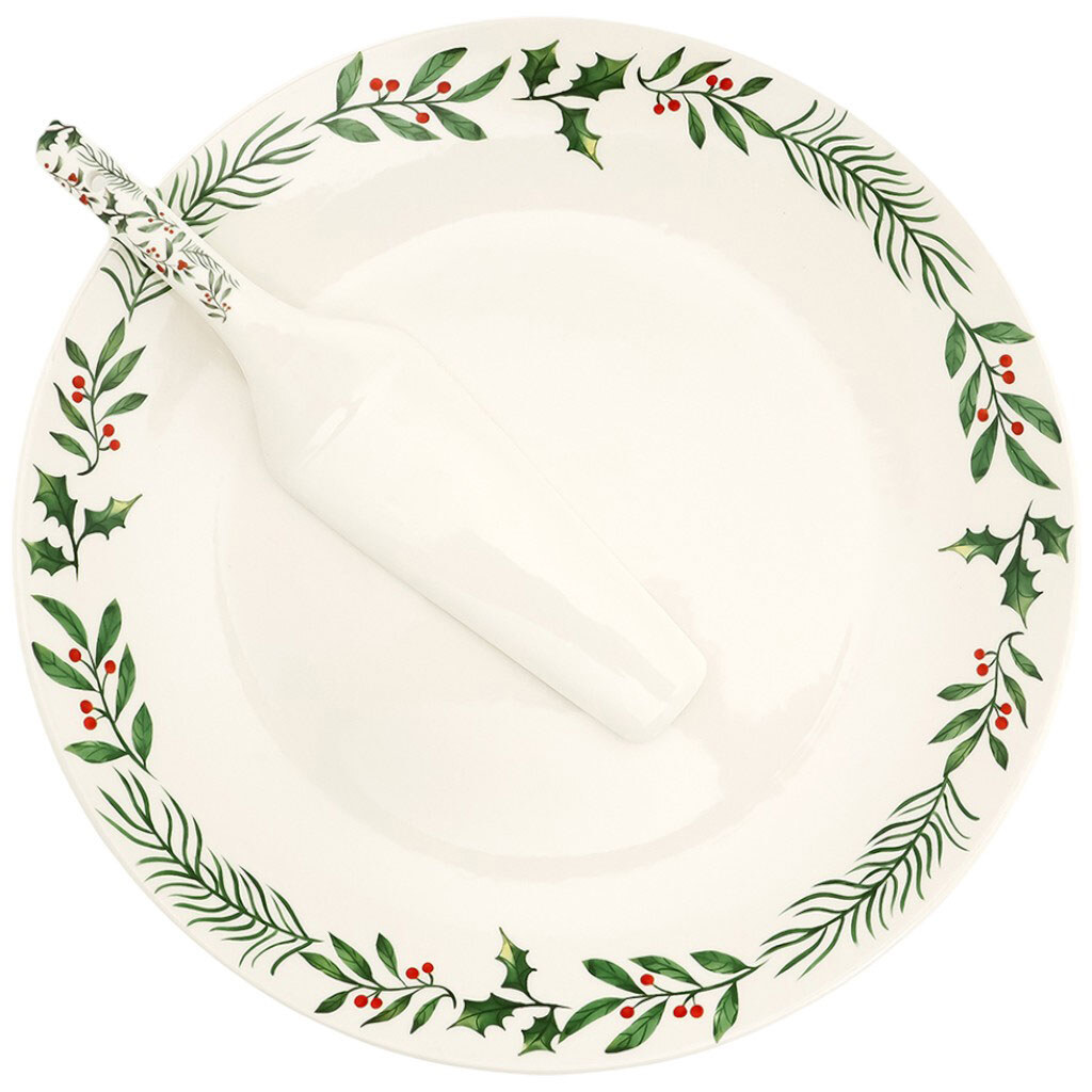 Набор для торта фарфоровый Almo Рождественский: блюдо+лопатка