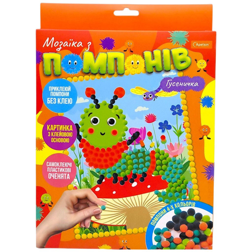 Набор для творчества "Мозаика из помпонов: Гусеничка", Апельсин