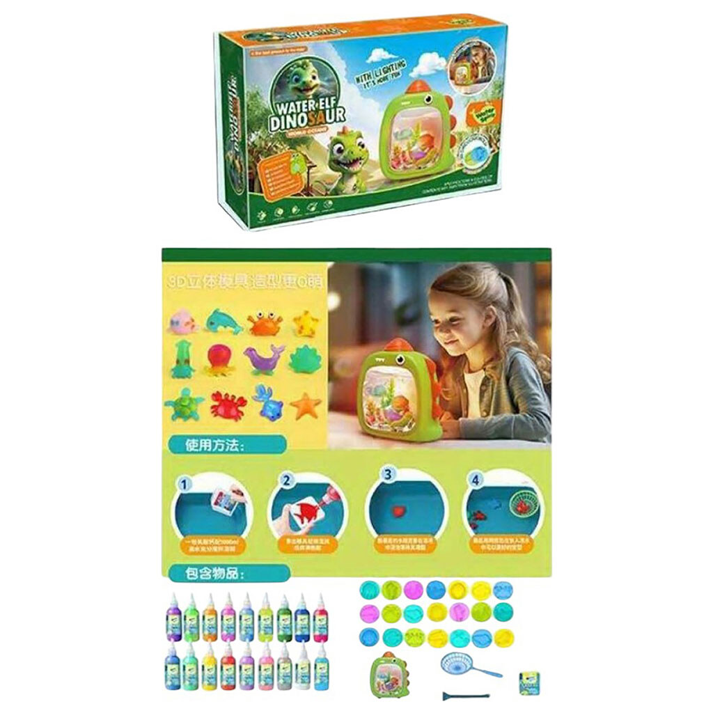 Примечание: Упаковка: Коробка | Тип эл-тов питания: Батарейки | Эл-ты питания в комплекте: Есть | Вес в упаковке: 570 г | Габариты в упаковке: 19 x 30 x 8 см | Страна производитель: Китай | Комплектация: аквариум; 4 цвета геля; 4 формы с животными для геля; пакетик с порошком-активатором; орбизы; инструменты для формирования геля и извлечение его из активирующей жидкости