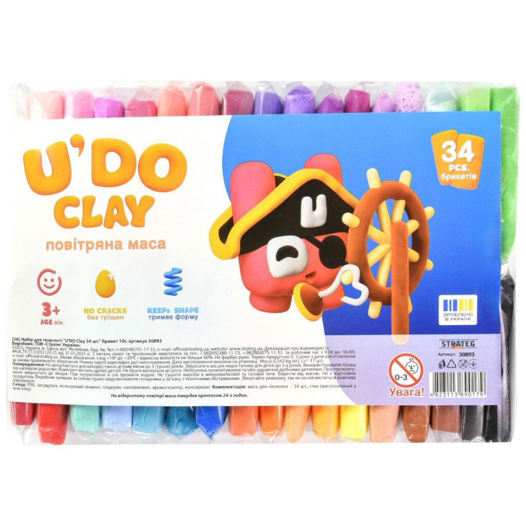 Набор для творчества, воздушный пластилин, "UʼDO Clay", 34 шт, брикет 10 г, укр, Strateg
