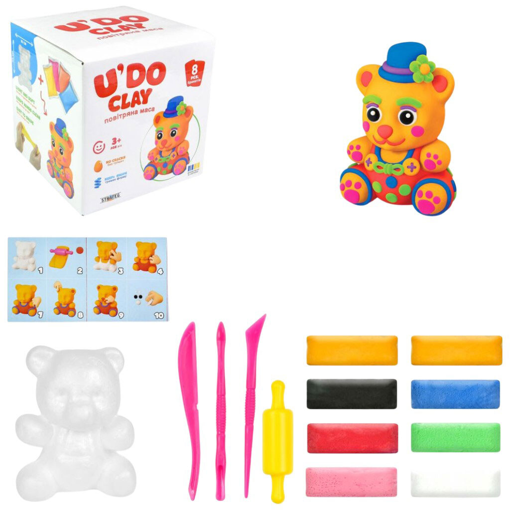 Набор для творчества, воздушный пластилин, "Медведь UʼDO Clay", Strateg
