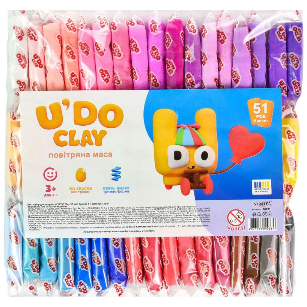 Набор для творчества, воздушный пластилин, "UʼDO Clay 51 шт.", брикет 6г, укр, Strateg