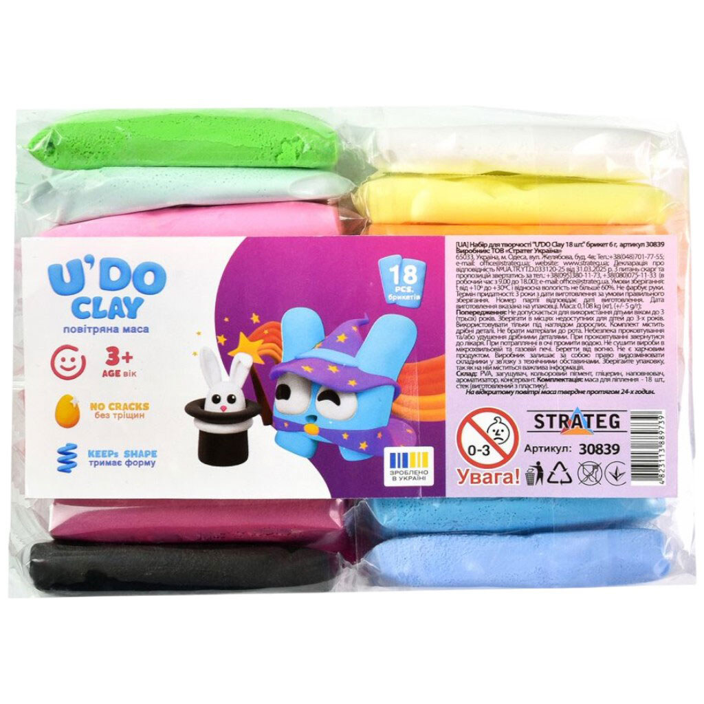 Набор для творчества, воздушный пластилин, "UʼDO Clay. 18 шт", брикет 6г, Strateg