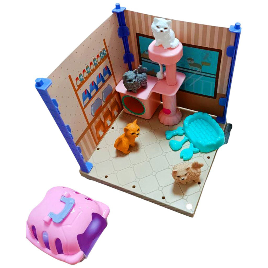 Набор игрушечный "Домик с котиками", аксессуарами
