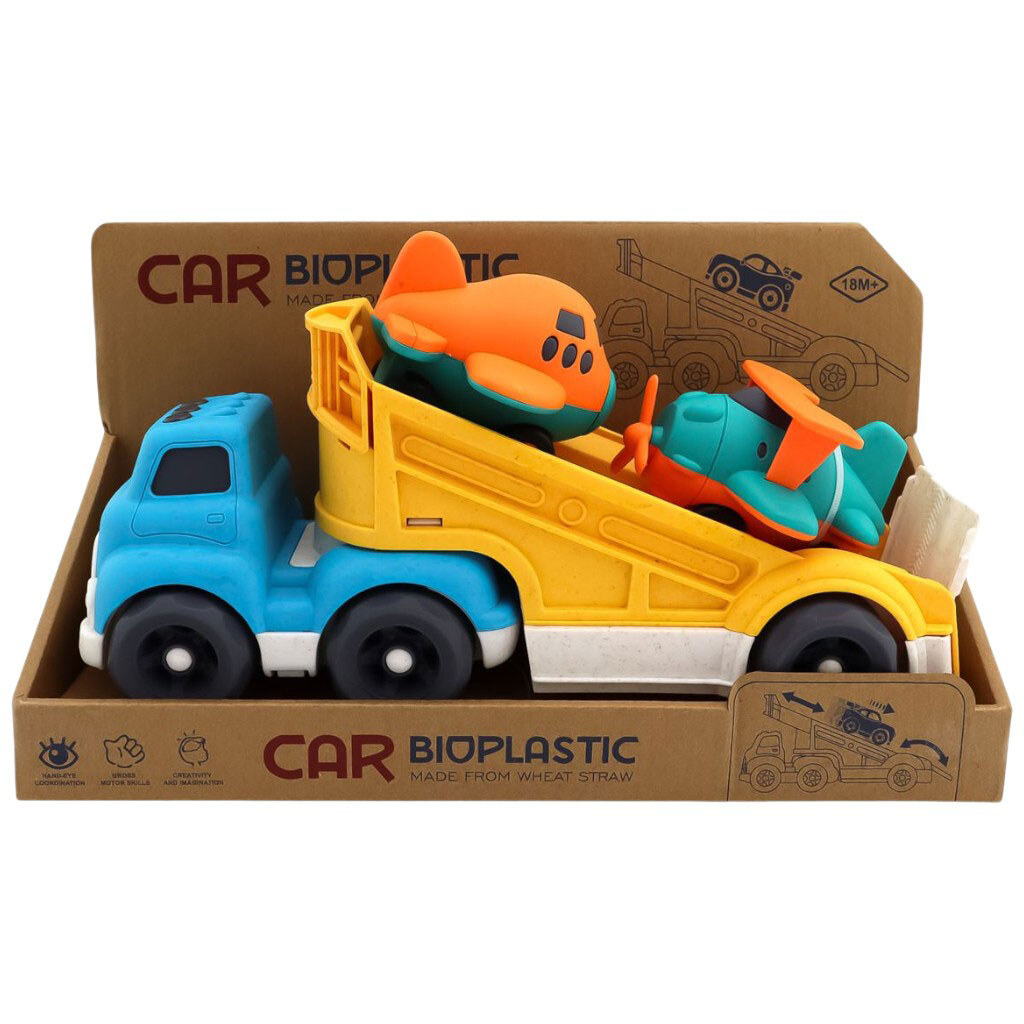 Примечание: Количество в упаковке, шт: 3 | Комплектация: 1 грузовой автомобиль, 1 вертолет, 1 самолет | Страна производитель: Китай | Материал: Пшеничная солома переработана | Размер: 37х13х20 см | Пол ребенка: Для мальчиков