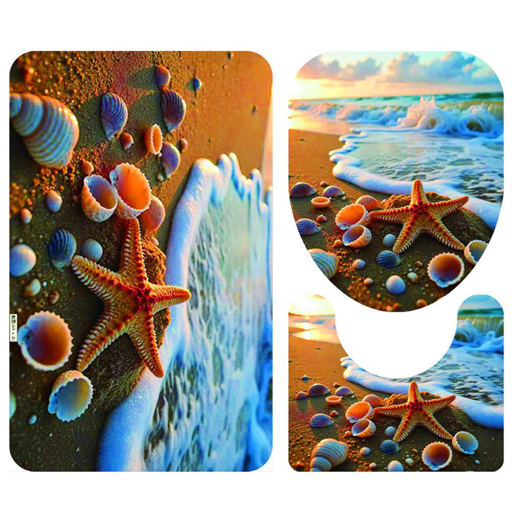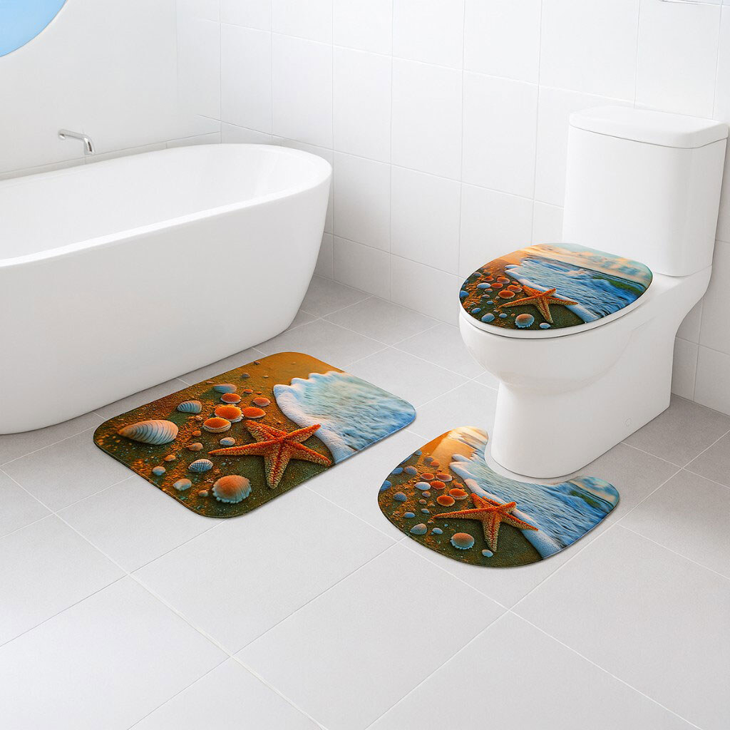 Набор ковриков для ванной комнаты "Морской дизайн", 3 шт.