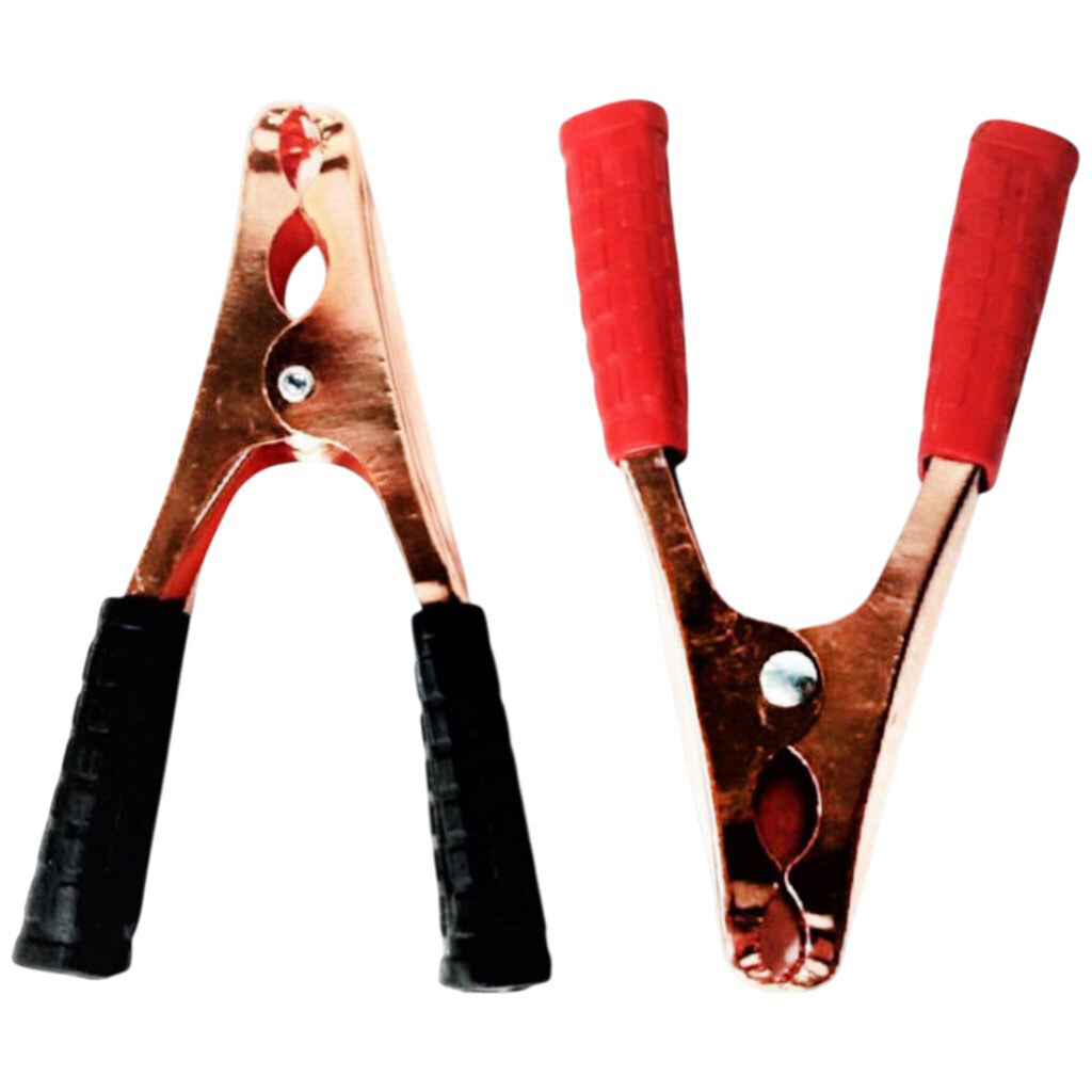 Примечание: Количество в упаковке, шт: 2 | Страна происхождения: Китай | Материал: Металл, резина | Назначение: Для "прикуривания" разряженного аккумулятора автомобиля от автомобиля донора
