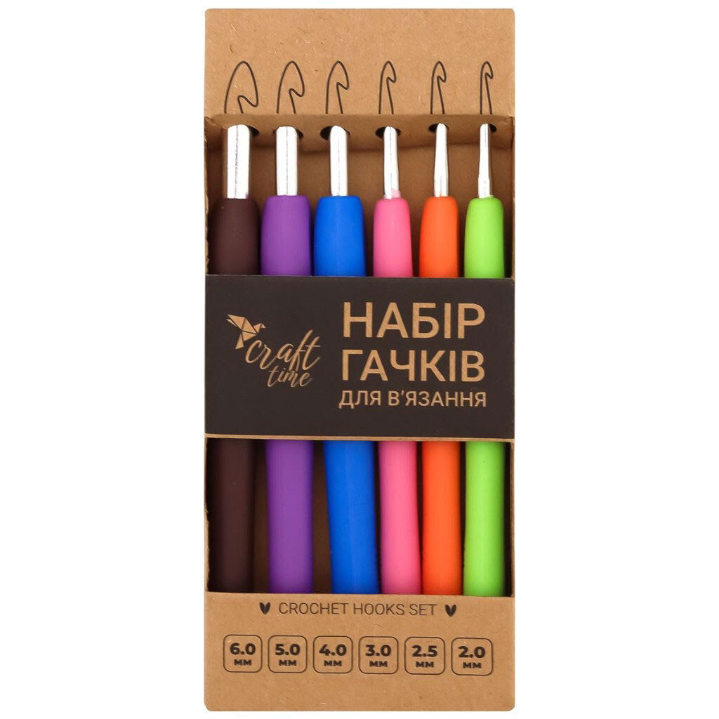 Примечание: Длина: 13,5 см | Количество в упаковке, шт: 6 | Страна производитель: Китай | Материал: Термопластическая резина, железо | Назначение: Инструмент для вязания | Размер: 2.0 мм, 2.5 мм, 3.0 мм, 4.0 мм, 5.0 мм, 6.0 мм