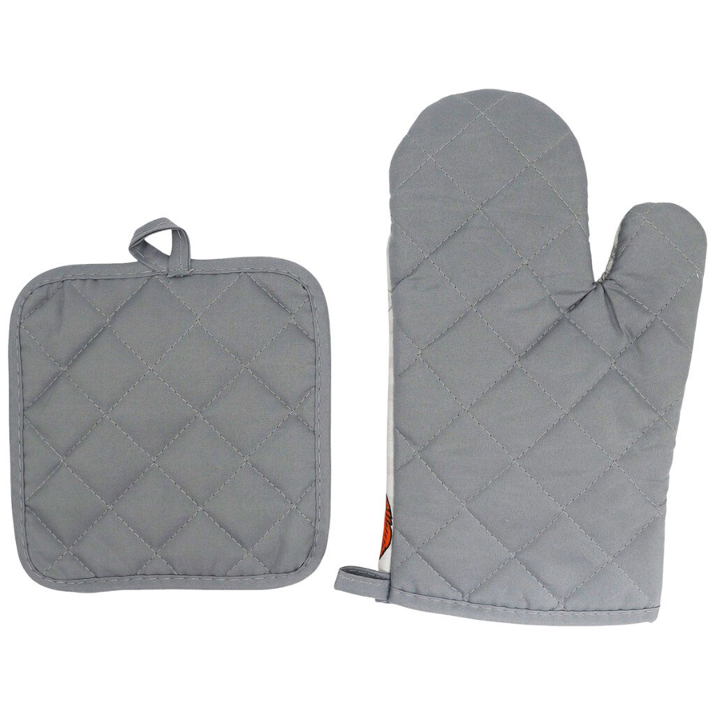 Примечание: Комплектация: Перчатка, прихватка | Страна производитель: Китай | Материал: 100% полиэстер | Размер: Перчатка: 18х28 см, прихватка: 18х18 см